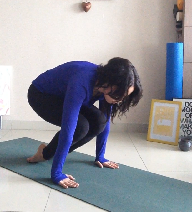 Lean your weight into your hands and press strongly into the ground as you exhale